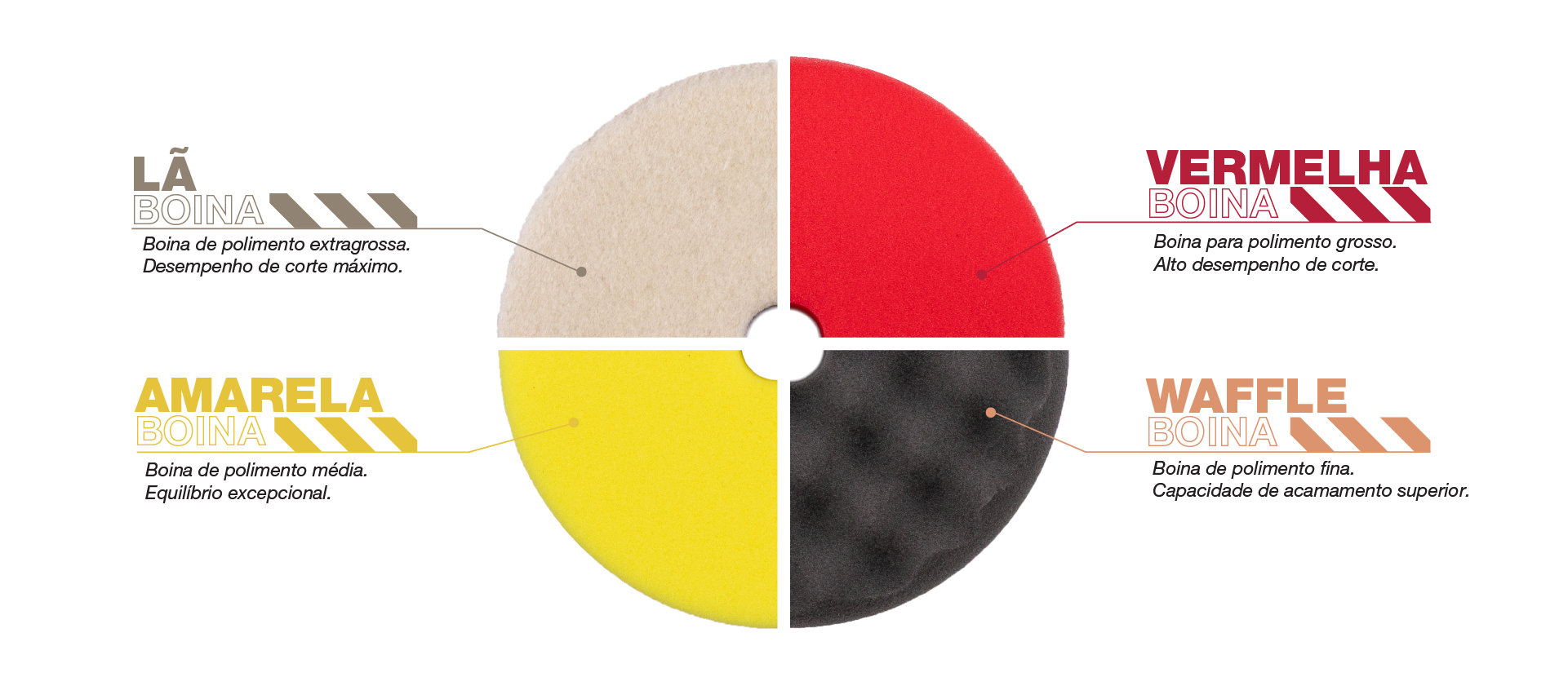 Um sistema completo de boinas de polimento com tecnologia de célula aberta, projetado para precisão em todas as etapas. Com quatro densidades e três tamanhos práticos, você estará pronto para lidar com cada curva, borda e detalhe com confiança.
