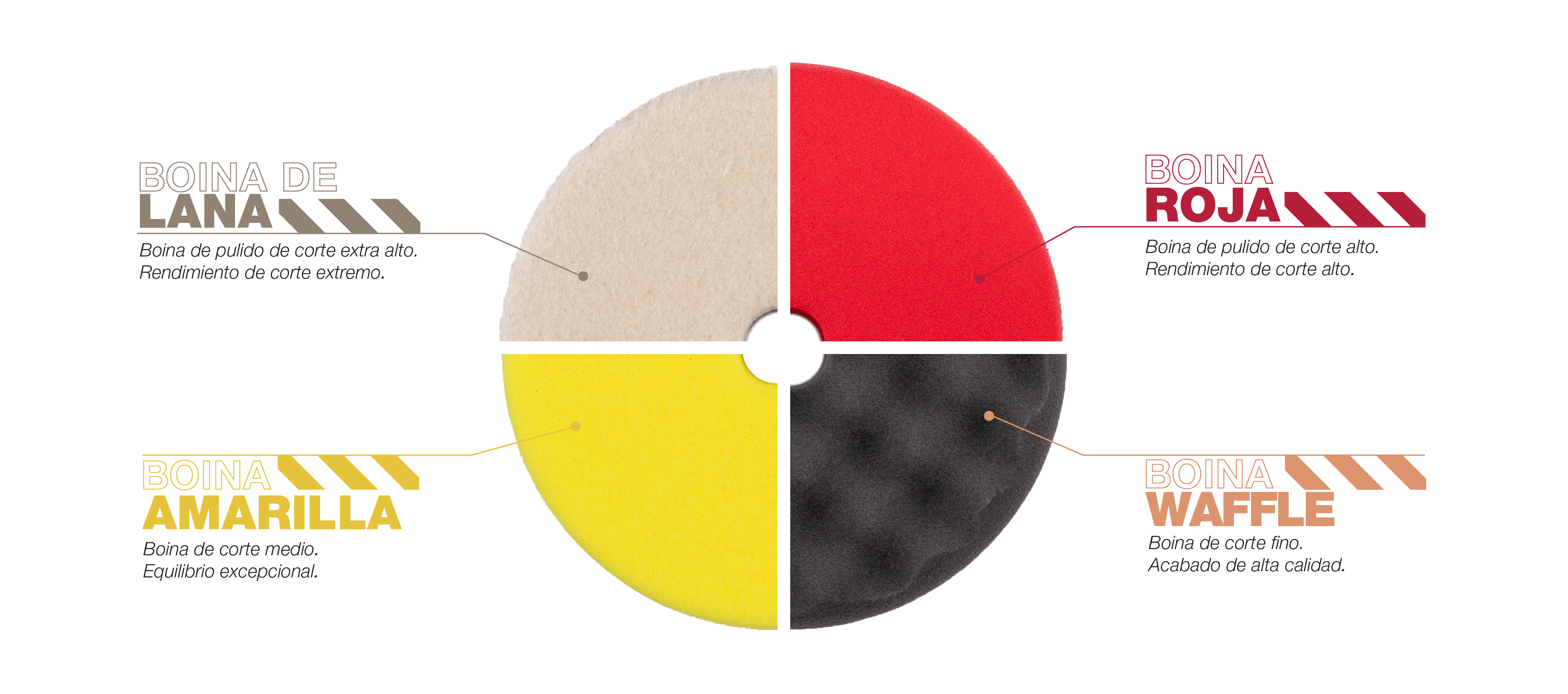 Un sistema completo de boinas de pulido con tecnología de celda abierta, diseñado para ofrecer precisión en cada etapa. Con cuatro densidades y tres tamaños prácticos, estarás preparado para abordar cada curva, borde y detalle con total confianza.