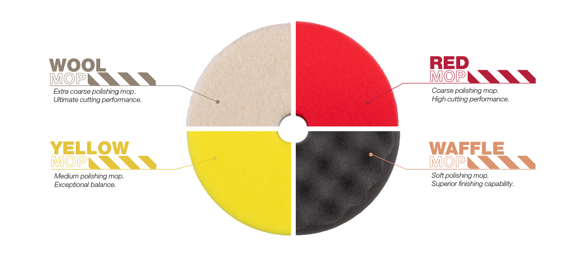 A complete polishing mop system with open cell technology, engineered for precision at every stage. With four densities and three convenient sizes, you’ll be ready to tackle every curve, edge, and detail with confidence.
