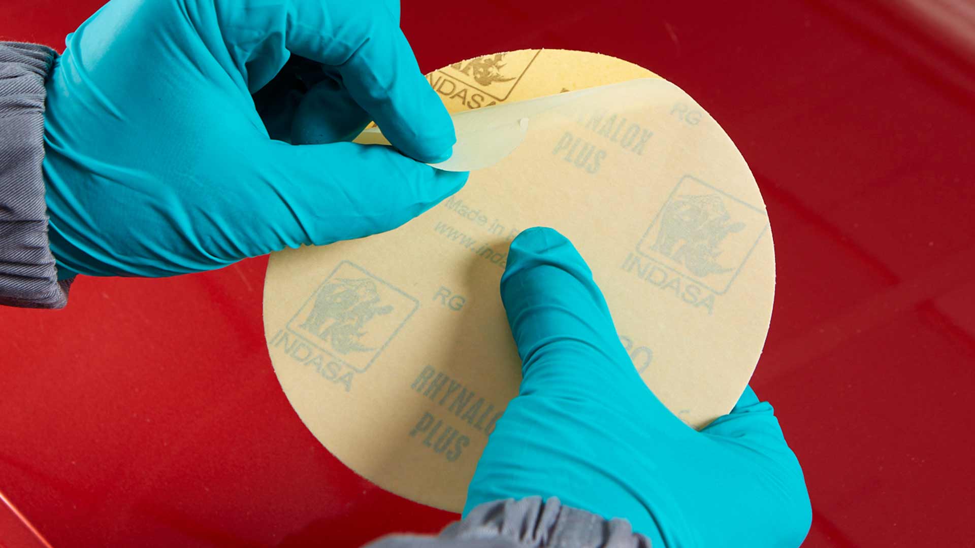 With the tab system, the removal of the release paper from the Rhynostick disc is quick and easy